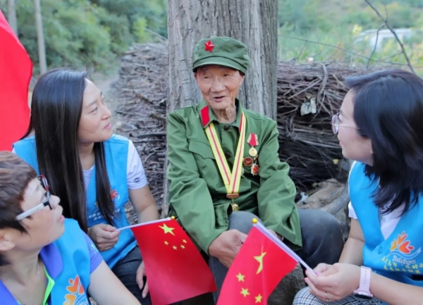 聊起組建志愿服務(wù)隊(duì)的初衷,牛月華說:“2017年,第一次跟隨志愿者參與慰問抗戰(zhàn)老兵活動,遇到一位無兒無女、生活困難的老人,身上還有抗戰(zhàn)時(shí)留下的傷,當(dāng)時(shí)覺得老人特別需要關(guān)愛和照顧?!敝驹阜?wù)的種子就此在牛月華的心中種下,她覺得如果有更多的人關(guān)注這些抗戰(zhàn)老兵,老人的生活肯定會更好一點(diǎn)。就這樣,同年6月,牛月華帶著自己的員工和身邊的愛心人士組建了第五大道文化藝術(shù)志愿服務(wù)隊(duì)。關(guān)愛老兵、志愿助殘、愛心攝影都是志愿服務(wù)隊(duì)重要的志愿服務(wù)行動,如今,牛月華已經(jīng)數(shù)不清他們走過多少村莊和小區(qū),幫助了多少需要幫助的人。