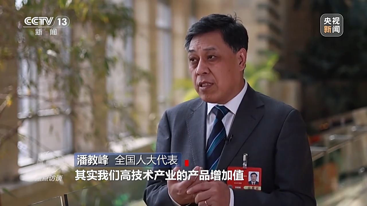 全國(guó)人大代表 潘教峰:其實(shí)我們高技術(shù)產(chǎn)業(yè)的產(chǎn)品增加值已經(jīng)遠(yuǎn)遠(yuǎn)快于其他行業(yè)的增長(zhǎng),幾乎是GDP增速的一倍多將近兩倍。像集成電路、機(jī)器人等,它的增速是兩位數(shù)以上的,這背后反映出新質(zhì)生產(chǎn)力發(fā)展的效果。