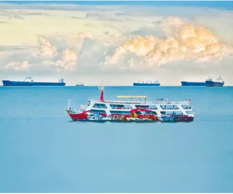 而“尋仙2號”則以現(xiàn)代美學詮釋海洋之夢。四層甲板如同展開的航海畫卷,水母主題餐廳里光影流轉(zhuǎn),開放式觀景臺上海風拂面。四十分鐘的航程里,游客既能感受“直掛云帆濟滄海”的豪情,又可體驗“海上生明月”的浪漫。