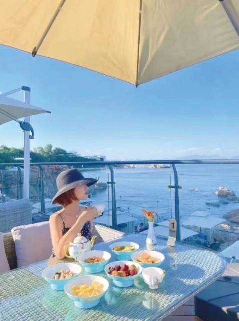 漫步歡樂灣,每一步都像是踏在詩行上。沙灘上的兒童樂園傳來銀鈴般的笑聲,美食街飄散著人間煙火的香氣。最令人心醉的,是那七座被鮮花簇擁的海上花島,宛若調(diào)色盤,在海面上繪就一幅流動的油畫。當潮水輕吻礁石,飛鳥掠過桅桿,整個歡樂灣便成了海天之間的抒情詩。