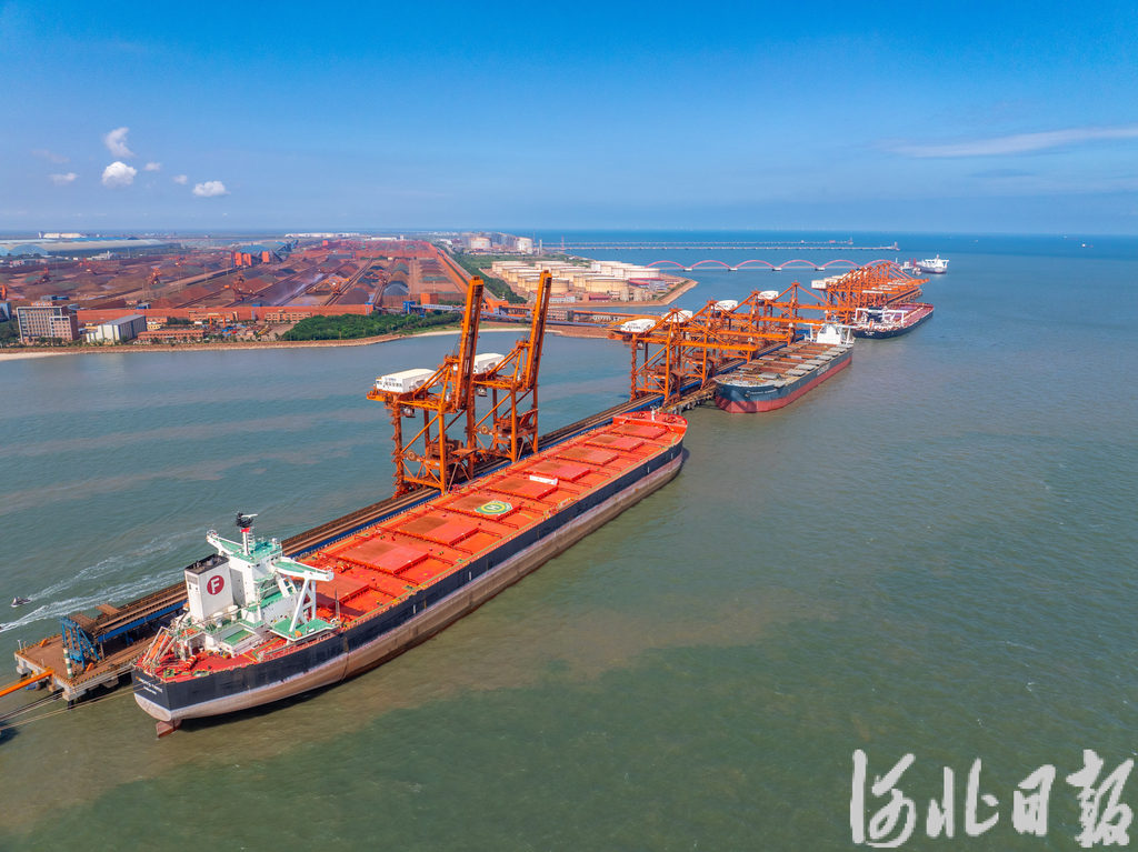 7月22日,貨輪靠泊在唐山港曹妃甸港區(qū)礦石碼頭。