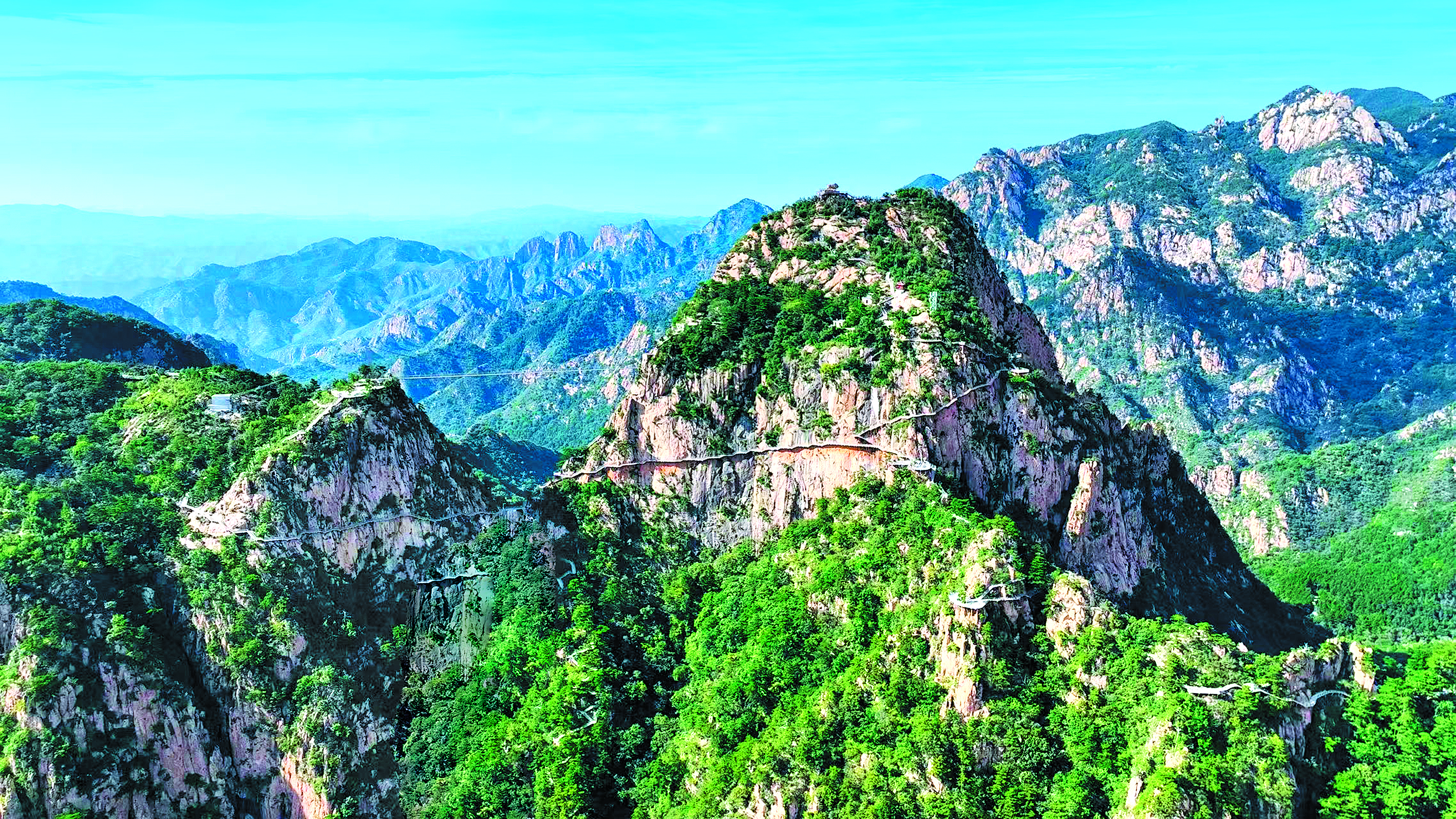“前方是云海天梯,在這兒可以俯瞰萬仞絕壁,盡賞山林美景。右手邊的長城敵樓被稱為‘菜畦樓’,相傳守樓的將士們曾在這里種菜……”7月30日,冰塘峪長城風情大峽谷的工作人員向游客們介紹。