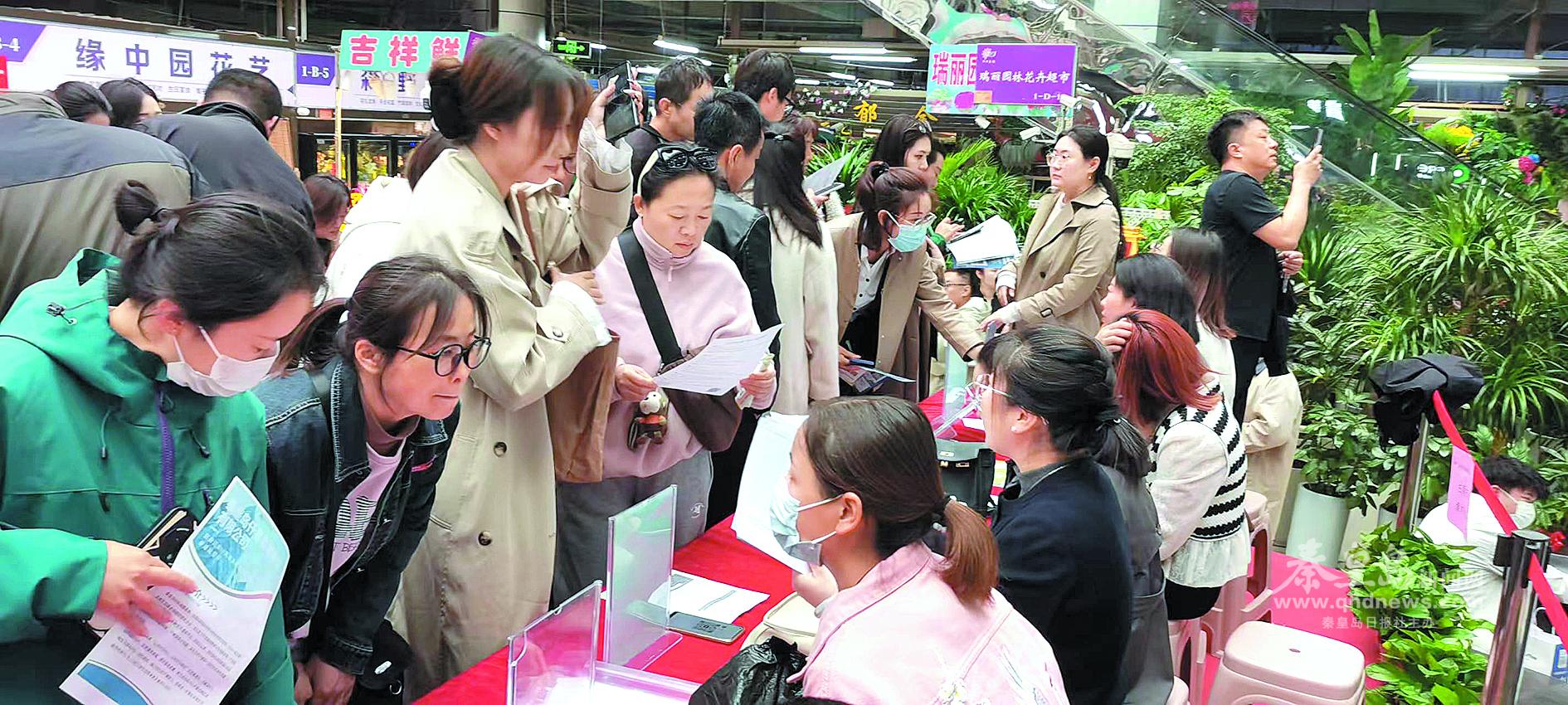 在海港區(qū)某花卉市場舉行的專場招聘會上,求職者向用人單位咨詢崗位相關(guān)情況。 通訊員王濤攝