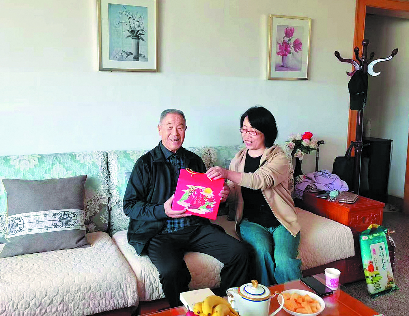 宗曉靜(右)看望慰問(wèn)老干部。 (圖片由市委老干部局提供)