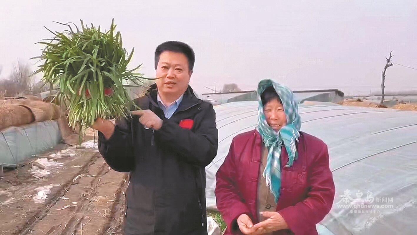 工作隊通過網(wǎng)絡平臺幫助村民推銷大棚韭菜。(圖片由市委宣傳部駐昌黎縣馬鐵莊村下沉工作隊提供)