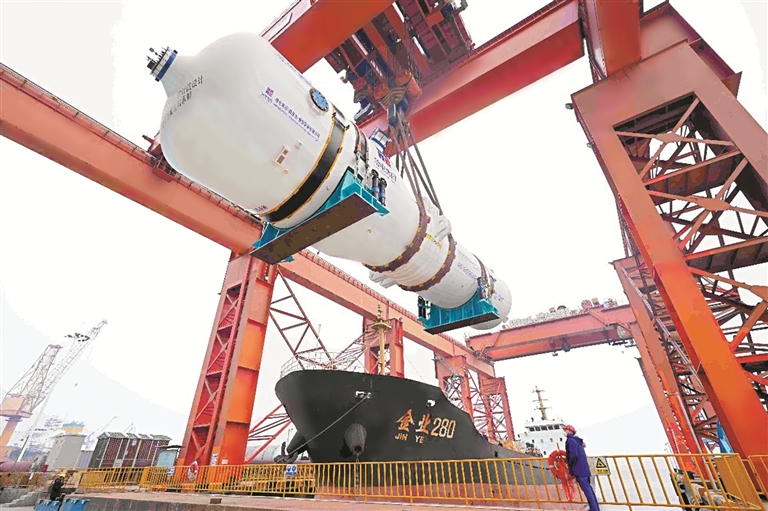 漳州核電二期工程三號機(jī)組“華龍一號”蒸汽發(fā)生器準(zhǔn)備裝船發(fā)運。通訊員 王繼軍 攝