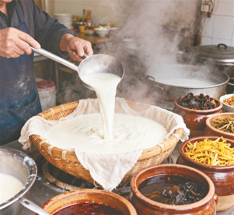 制作豆腐腦的工藝精細而講究。