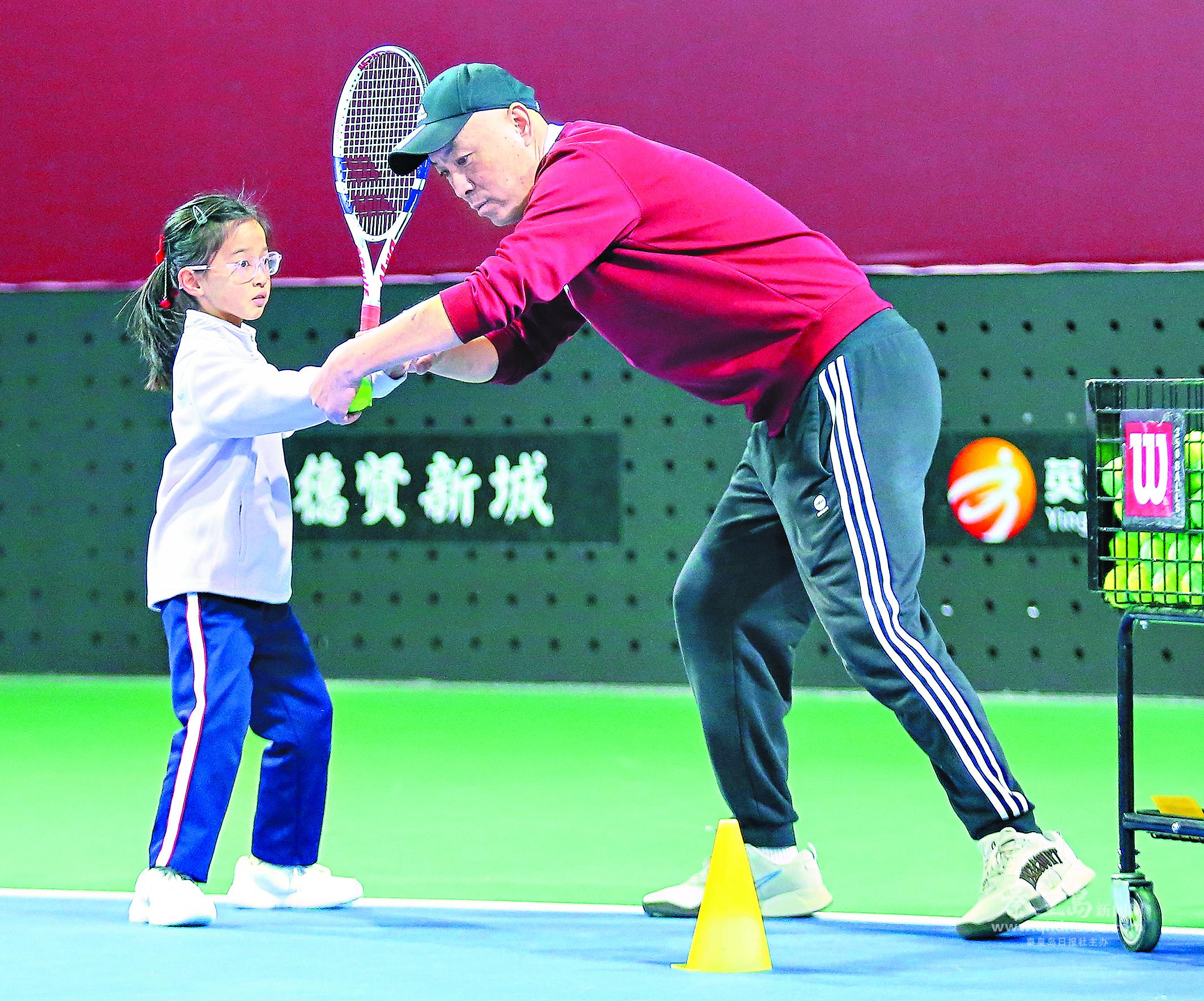 1月13日,在市奧體中心氣膜網(wǎng)球館,一名小朋友在市網(wǎng)球協(xié)會(huì)教練的指導(dǎo)下進(jìn)行網(wǎng)球訓(xùn)練。近年來(lái),“雙減”政策持續(xù)深入推進(jìn),學(xué)生課業(yè)負(fù)擔(dān)明顯減輕,課余時(shí)間日漸增多。許多家長(zhǎng)結(jié)合孩子自身興趣,選擇多樣化課外活動(dòng),幫助孩子在體育鍛煉、藝術(shù)培養(yǎng)、社會(huì)實(shí)踐等方面得到發(fā)展,促進(jìn)綜合素養(yǎng)的提升。