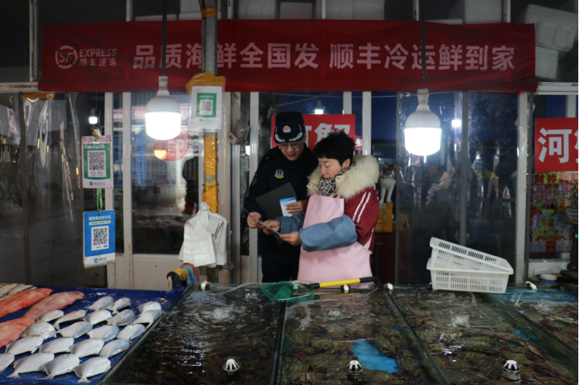 河北海警局春節(jié)進(jìn)市場(chǎng) 守護(hù)百姓“舌尖安全”