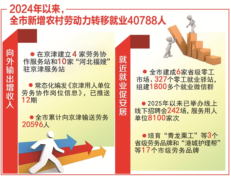 搶抓京津冀協(xié)同發(fā)展機(jī)遇,我市將京津地區(qū)作為農(nóng)村勞動(dòng)力外出務(wù)工的主要方向,制訂出臺(tái)拓展京津勞務(wù)市場(chǎng)行動(dòng)方案,在北京市海淀區(qū)、天津市濱海新區(qū)等地建立4家勞務(wù)協(xié)作服務(wù)站和10家“河北福嫂”駐京津服務(wù)站。常態(tài)化編發(fā)《京津用人單位勞務(wù)協(xié)作崗位信息》,目前已推送12期,累計(jì)發(fā)布5020家次用人單位崗位信息7.1萬個(gè)。2024年以來,全市累計(jì)向京津輸送勞務(wù)20596人,其中北京14306人、天津6290人。