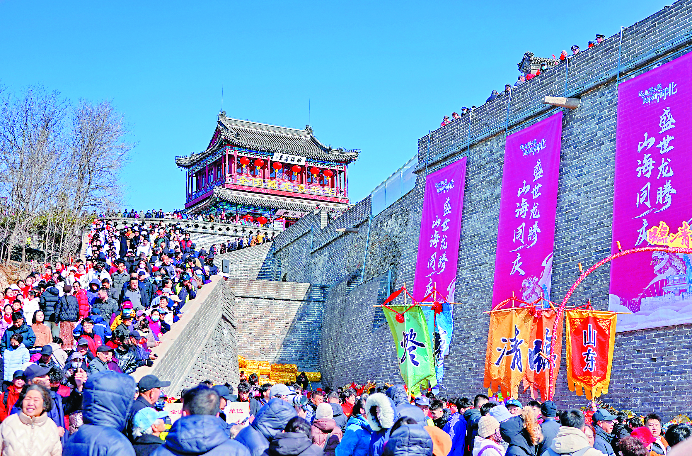 “往年只在網(wǎng)上看,今年終于有機(jī)會(huì)來到山海關(guān)老龍頭親身感受二月二的熱鬧景象,果然不虛此行?!眮碜院J島的游客沈娟芬從進(jìn)入景區(qū)開始,手機(jī)就開啟了直播模式,一直在和家人朋友分享精彩演出。一路走來,詼諧逗趣的地秧歌、敏捷靈動(dòng)的猴打棒、熱烈高亢的撫寧吹歌都讓沈女士印象深刻。走到澄海樓,老、中、青、少合唱團(tuán)體組成的萬人共唱《龍的傳人》更是氣勢(shì)磅礴。景區(qū)里各項(xiàng)文體展演環(huán)環(huán)相扣,精彩紛呈。