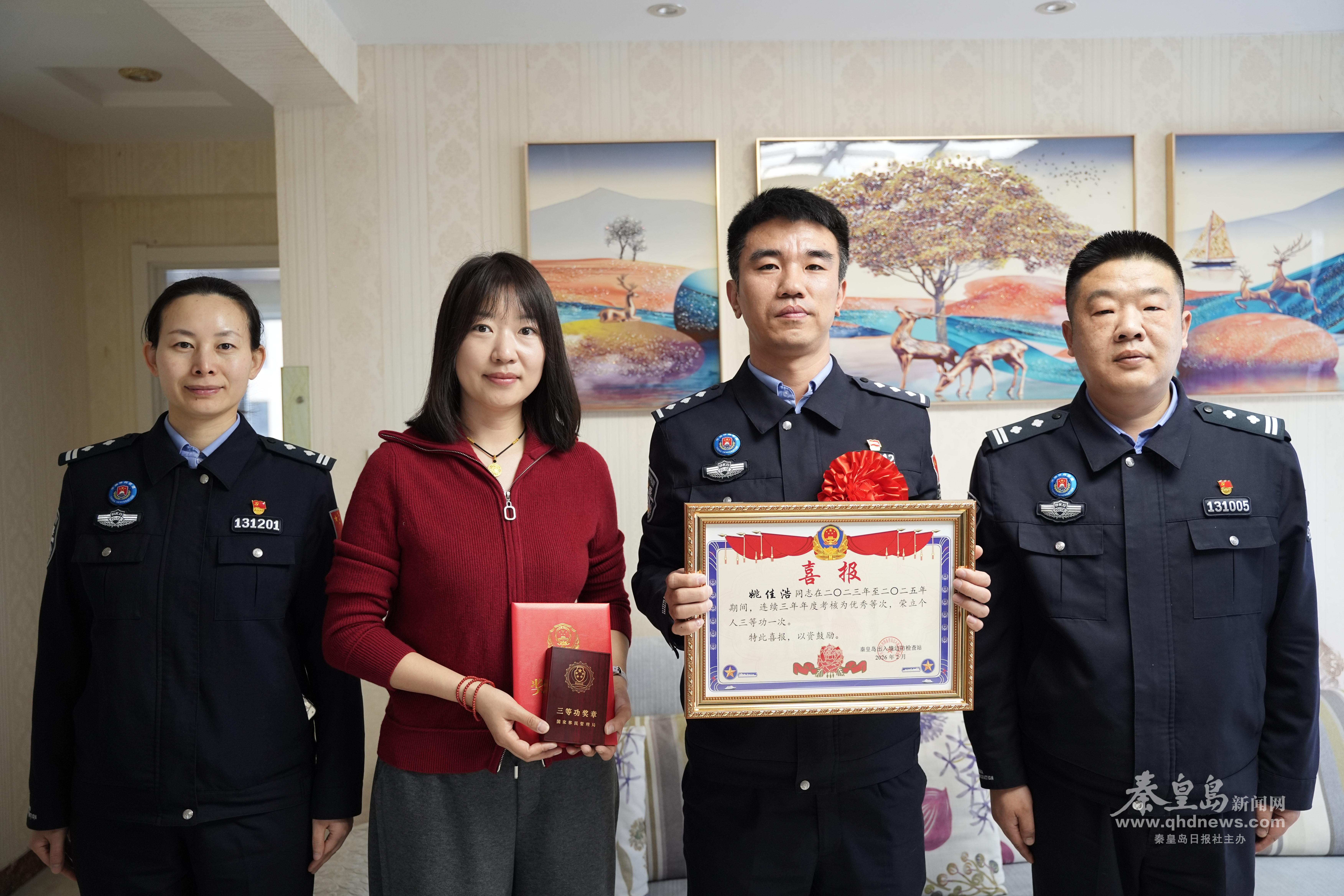 秦皇島出入境邊防檢查站組織開展“送獎到崗,喜報到家”活動