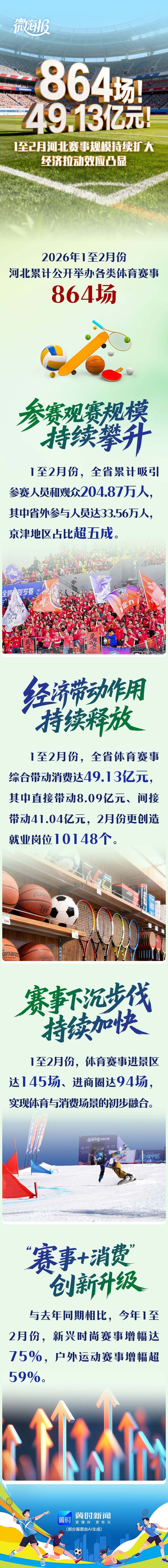 微海報丨864場!49.13億元!1至2月河北賽事規(guī)模持續(xù)擴(kuò)大 經(jīng)濟(jì)拉動效應(yīng)凸顯