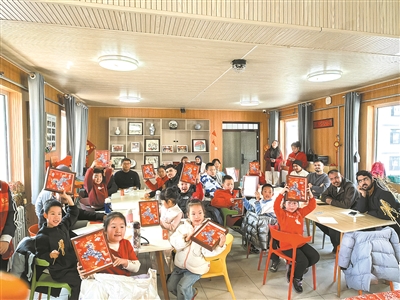 社區(qū)組織轄區(qū)兒童與燕山大學(xué)留學(xué)生們共同創(chuàng)作青花瓷貼畫。