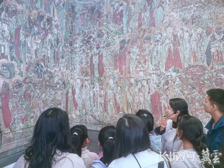 毗盧寺博物院講解員為前來研學(xué)旅行的孩子們講解毗盧寺壁畫。長城網(wǎng)·冀云客戶端記者 吳新光 攝