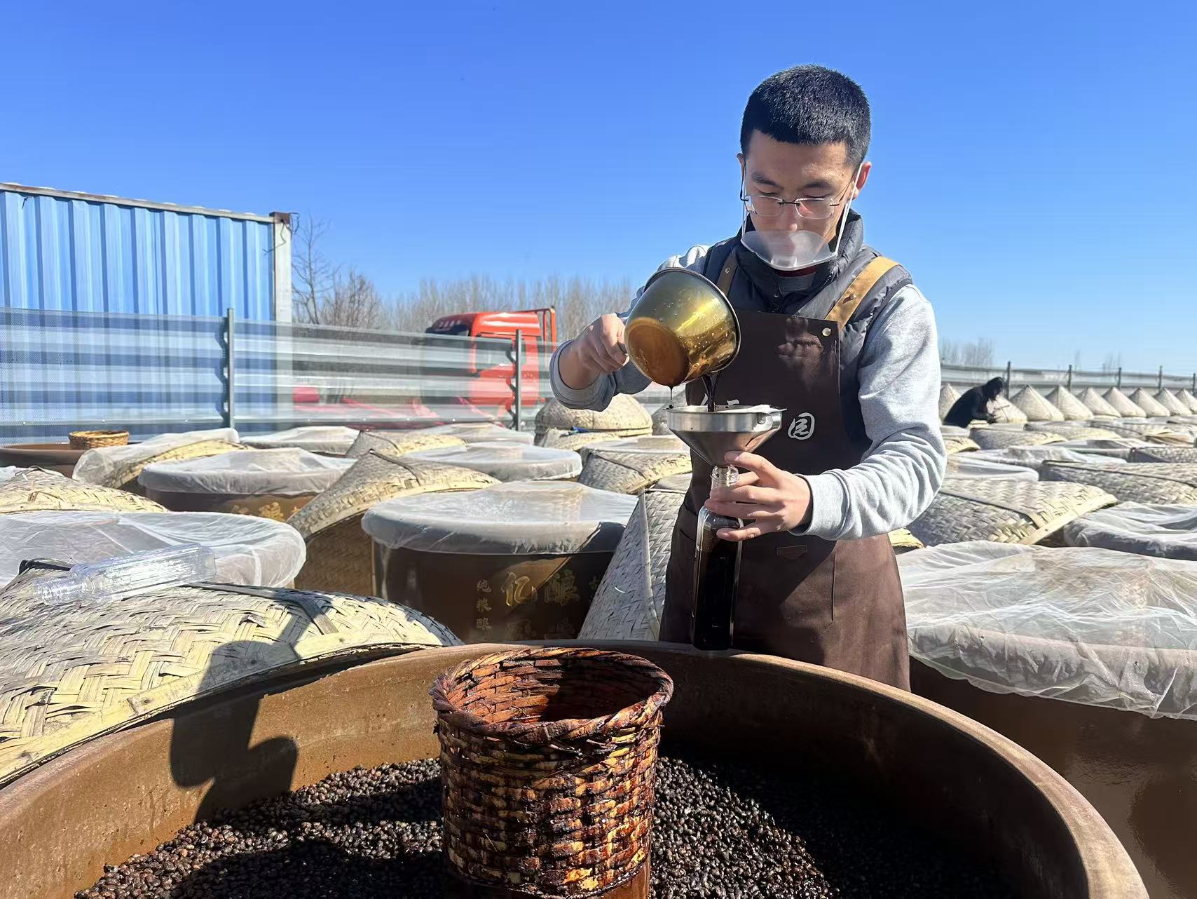 對(duì)于孟陽而言,他的童年始終縈繞著祖父釀造醬油的醇厚香氣,祖輩堅(jiān)守的古法技藝,早已深深烙印在他的成長(zhǎng)記憶里。大學(xué)畢業(yè)后,他選擇返鄉(xiāng)扎根,接過接力棒,守護(hù)起這份記憶中的老味道。為了吃透古法釀造的精髓,孟陽從零起步,反復(fù)打磨每一道工序,從原料篩選、溫度控制到把握發(fā)酵時(shí)機(jī),每一個(gè)細(xì)節(jié)都反復(fù)鉆研、精益求精。