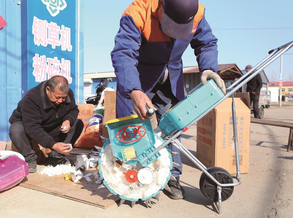 遷安市夏官營(yíng)鎮(zhèn)農(nóng)技人員在組裝微型智能農(nóng)具。